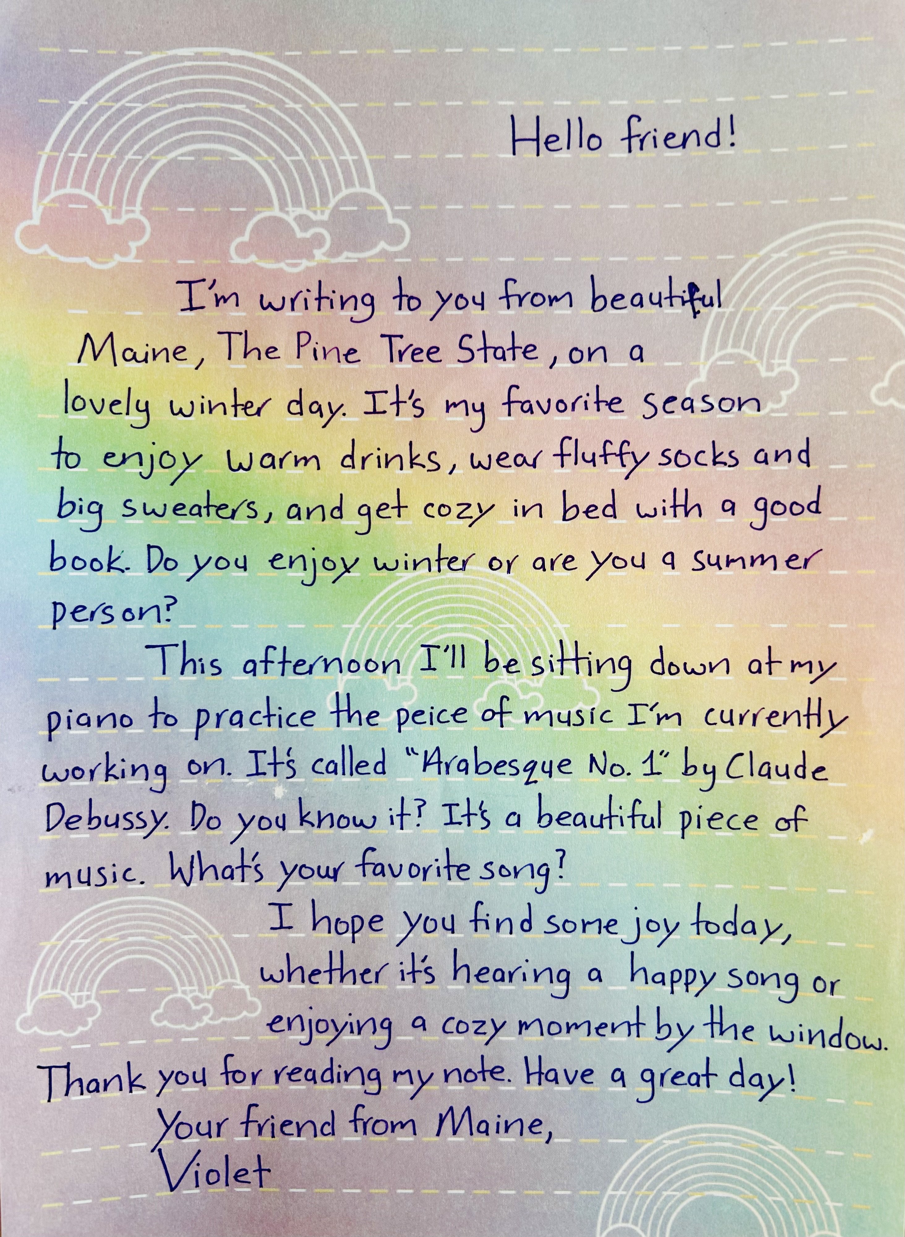 Join Letters Against Isolation, a volunteer-run project bringing joy to seniors in aged care homes and programs across the U.S., Canada, the U.K., and Australia. Since 2020, our volunteers have mailed over one million cheerful, one-of-a-kind handwritten letters in dozens of languages!